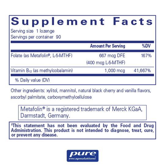 Great-tasting, dissolving B12 folate vitamin lozenge.